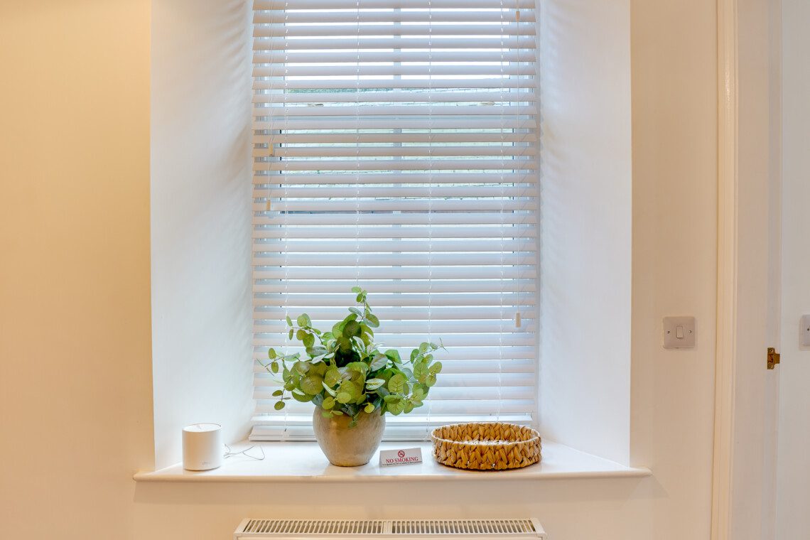 As you enter the apartment, a small set of stairs leads into the corridor. To the right, you’ll find the spacious, modern kitchen, fully equipped with an oven, hob, washing machine and fridge freezer, along with essential kitchenware to make your stay comfortable and convenient.